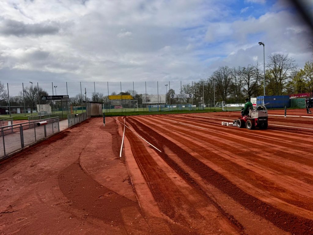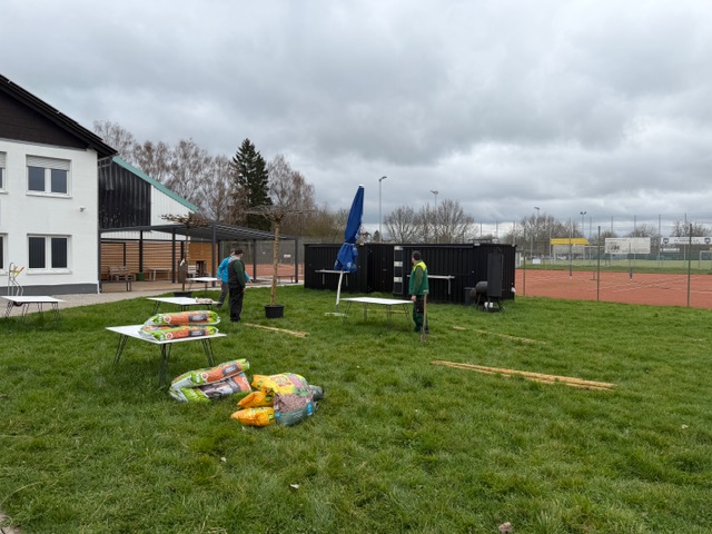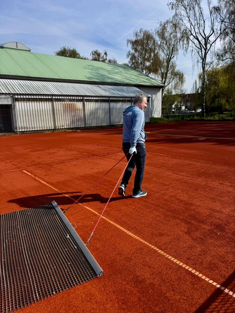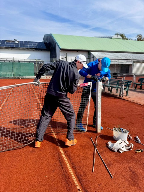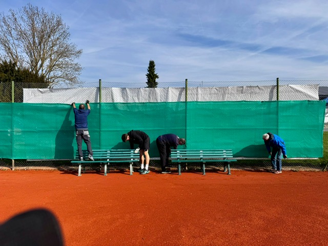 Während es bei der Vorbereitung des Platzaufbaus im März mehr um die ganz groben Arbeiten ging (es wurde gebaggert, gesägt, geschnitten und gerodet), ging es bei strahlendem Sonnenschein beim Platzaufbau im April um den Feinschliff. Es wurden die Netze und Sichtschutz aufgehängt, Bänke und Tische hochdruckgereinigt und die Anlage spielbereit gemacht. Ein großes Lob und Dankeschön an alle Helferinnen und Helfer, die unsere Anlage so zum Strahlen gebracht haben. Bereits um die Mittagszeit gingen die ersten Spielerinnen und Spieler auf die Plätze und läuteten die diesjährige Sandplatzsaison ein.